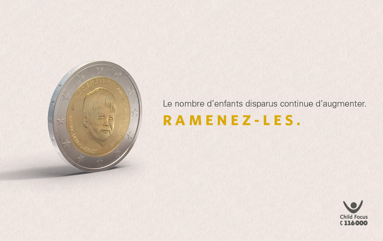 Child Focus a donc urgemment besoin d’un financement structurel supplémentaire du gouvernement. Entretemps, chaque citoyen qui le souhaite peut aider à combler le manque financier. C’est pourquoi, l’organisation a récemment lancé la campagne : "Ramenez-les" développée en collaboration avec l'agence de communication VML. En 2016, Child Focus envoyait aux quatre coins du monde 1 million de pièce de 2 euros, à l’effigie du petit Liam disparu. Ces "pièces de l'espoir" servent de rappel universel pour ne jamais oublier les enfants disparus. Aujourd'hui, Child Focus rappelle symboliquement ces pièces, car l’organisation en a désespérément besoin. Tout le monde peut ainsi faire un don via : https://childfocus.be/fr-be/je-donne-coins-of-hope