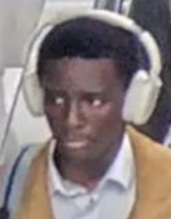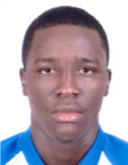 Corpulence normale. Courts cheveux foncés crêpus Pantalon noir. Chemise blanche. Veste brune claire. Baskets noires et blanches de marque « Nike »