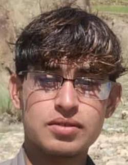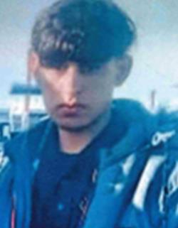 Corpulence mince. Cheveux courts noirs. Veste à capuche gris foncé avec des motifs orange. Djellaba gris foncé. Chaussures gris clair