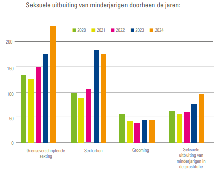 In 2024 opende Child Focus 227 nieuwe dossiers met betrekking tot grensoverschrijdende sexting. Ontdek meer cijfers in ons jaarverslag 2024 (PDF).